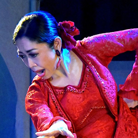 軽快な明るいリズムで構成したアレグリアス(喜び)、情熱的で哀愁漂うフラメンコの中でも重要な深い豊かな感情を表すソレア(孤独)、4拍子系のタンゴ、今は珍しい唄って踊るルンベーラの妙技、ギターとカンテ(唄)、バイレ(踊り)の掛け合いにより、三位一体のアドリブで会話する「即興の融合した世界」が生まれる、その空間を共有してください。