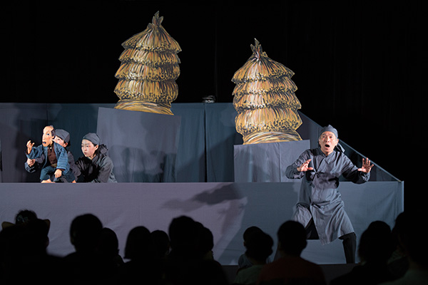 劇中の村のお祭りを身体表現豊かに描き、物語の中でも実際に耳の聞こえない人物が登場するなど、デフ・パペットシアター・ひとみならではの演出を多く取り入れています。