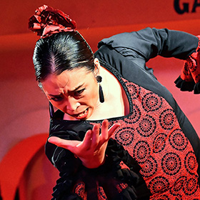 軽快な明るいリズムで構成したアレグリアス(喜び)、情熱的で哀愁漂うフラメンコの中でも重要な深い豊かな感情を表すソレア(孤独)、4拍子系のタンゴ、今は珍しい唄って踊るルンベーラの妙技、ギターとカンテ(唄)、バイレ(踊り)の掛け合いにより、三位一体のアドリブで会話する「即興の融合した世界」が生まれる、その空間を共有してください。
