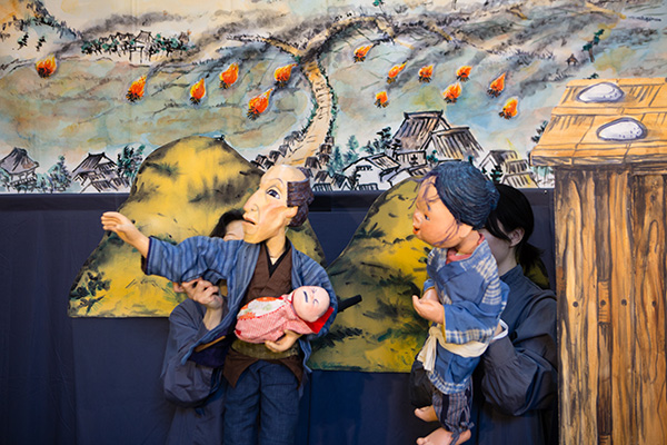 ろう者と聴者が共につくる人形劇団「デフ・パペットシアター・ひとみ」による防災人形劇。主人公の庄屋の五平衛が、昔では大変貴重な財産の稲むらを燃やして津波から村人を救うお話です。海外では「Fire of INAMURA」として防災教育に取り入れられ、地震後の津波への警戒と早期避難の重要性、災害時の助け合いの精神を描きます。