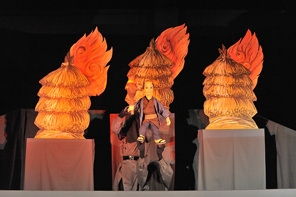 劇中の村のお祭りを身体表現豊かに描き、物語の中でも実際に耳の聞こえない人物が登場するなど、デフ・パペットシアター・ひとみならではの演出を多く取り入れています。